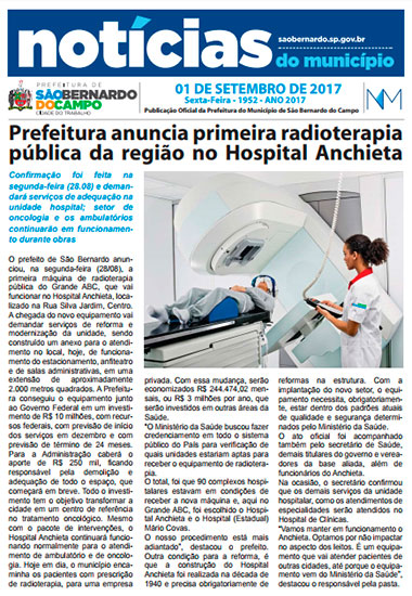 Todos os dias, o conteúdo da Imprensa Oficial da Prefeitura de São Bernardo é publicado integralmente online. São milhares de páginas publicadas, com arquivos desde 2002.